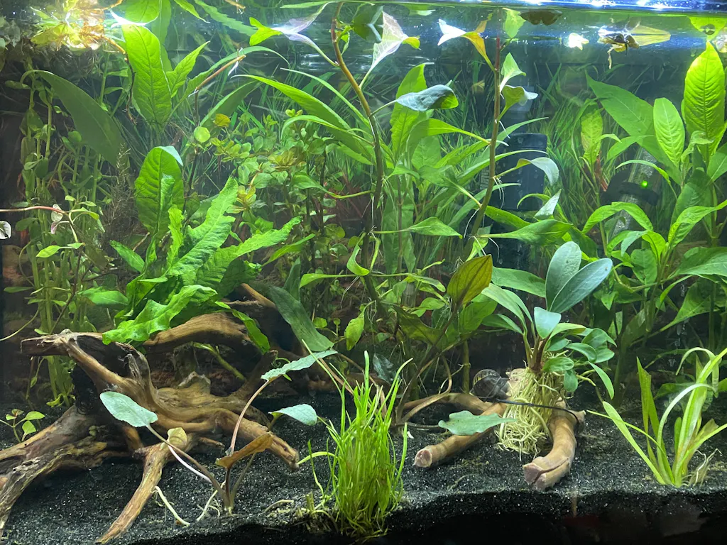Mystery Snails coexist well with fish, shrimp, and plants, and are ideal for low-tech tanks that follow the Father Fish method.